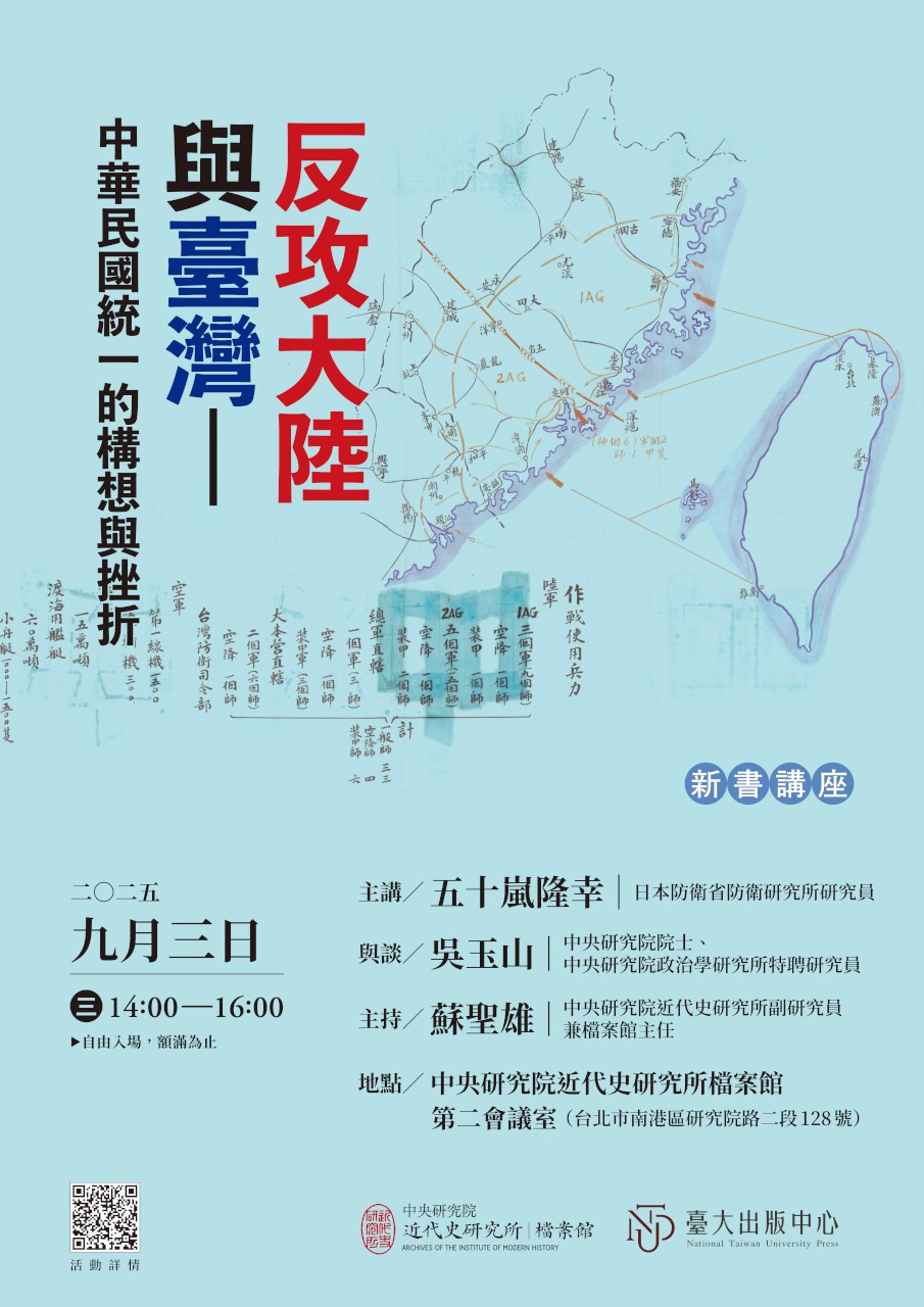 主講人五十嵐隆幸《反攻大陸與臺灣──中華民國統一的構想與挫折》新書出版資訊|網址連結:https://press.ntu.edu.tw/tw/publish/show.php?act=book&refer=ntup_book01449