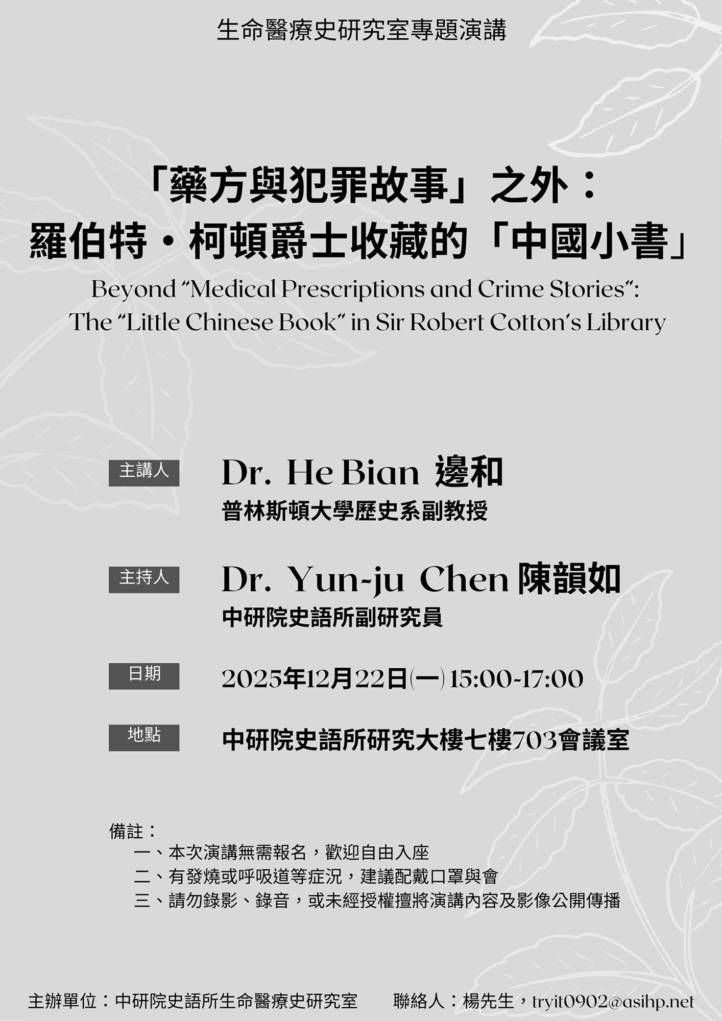 ※本次演講無需報名,歡迎自由入座。