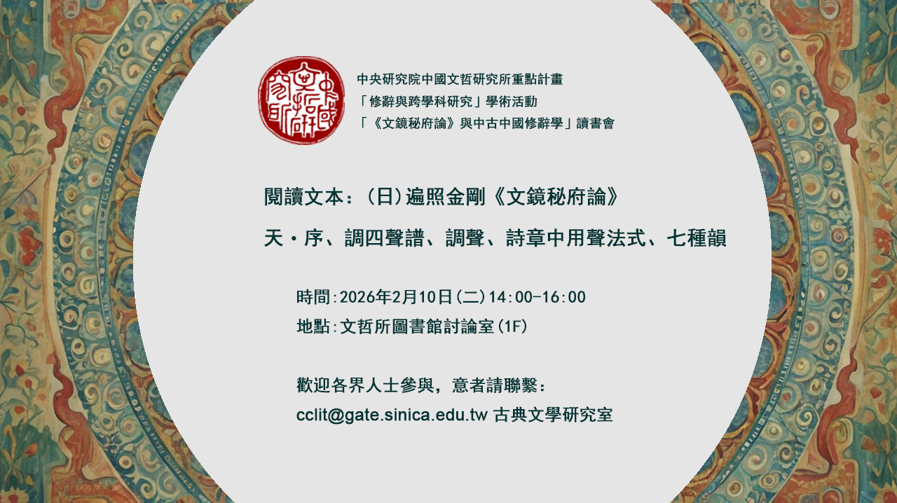 中研院文哲所--「《文鏡秘府論》與中古中國修辭學」第十一次讀書會
