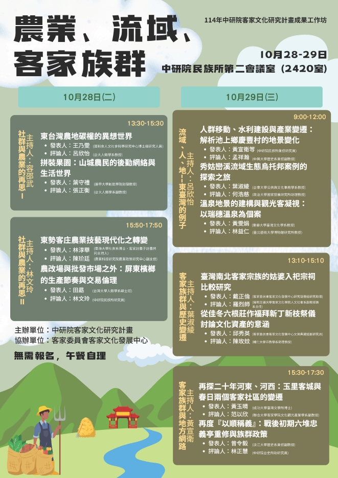 農業、流域、客家族群: 114年中研院客家計畫成果工作坊