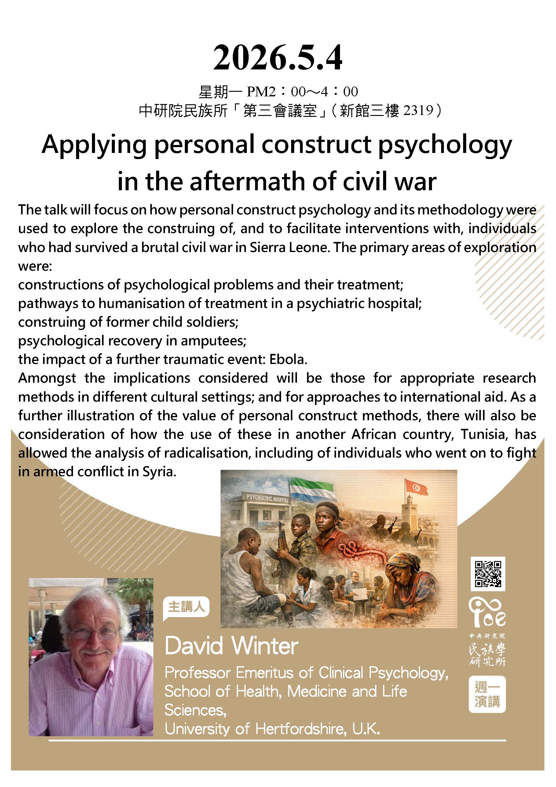 The talk will focus on how personal construct psychology and its methodology were used to explore the construing of, and to facilitate interventions with, individuals who had survived a brutal civil war in Sierra Leone. The primary areas of exploration were: